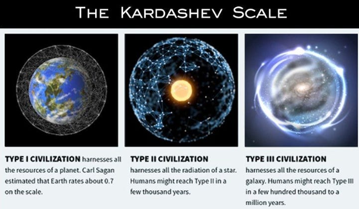 Type III (Galactic): A civilization that can control the energy of its entire galaxy (the Milky Way).