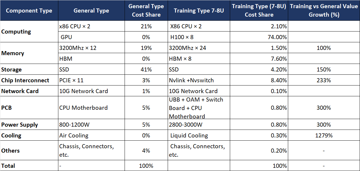 Versus general-purpose boxes, AI systems add GPUs and push upgrades in storage, cooling (air → liquid), power (higher draw), and PCBs (layer count, thermal performance, reliability).