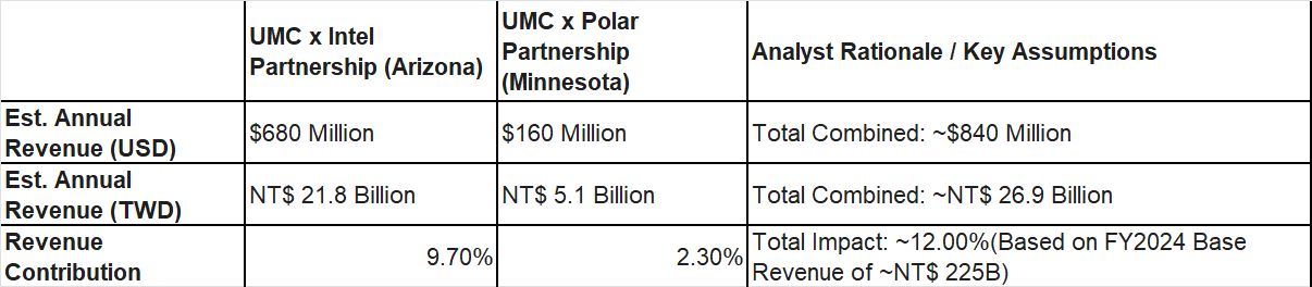 The “Pure Profit” Factor: While a 12% revenue boost (approx. NT$27B) is significant, the real story is the quality of these earnings. Because UMC is utilizing existing factories (Intel/Polar) rather than building new ones, there is minimal depreciation drag. This revenue should flow through to the bottom line at a much higher margin than UMC’s standalone fabs.